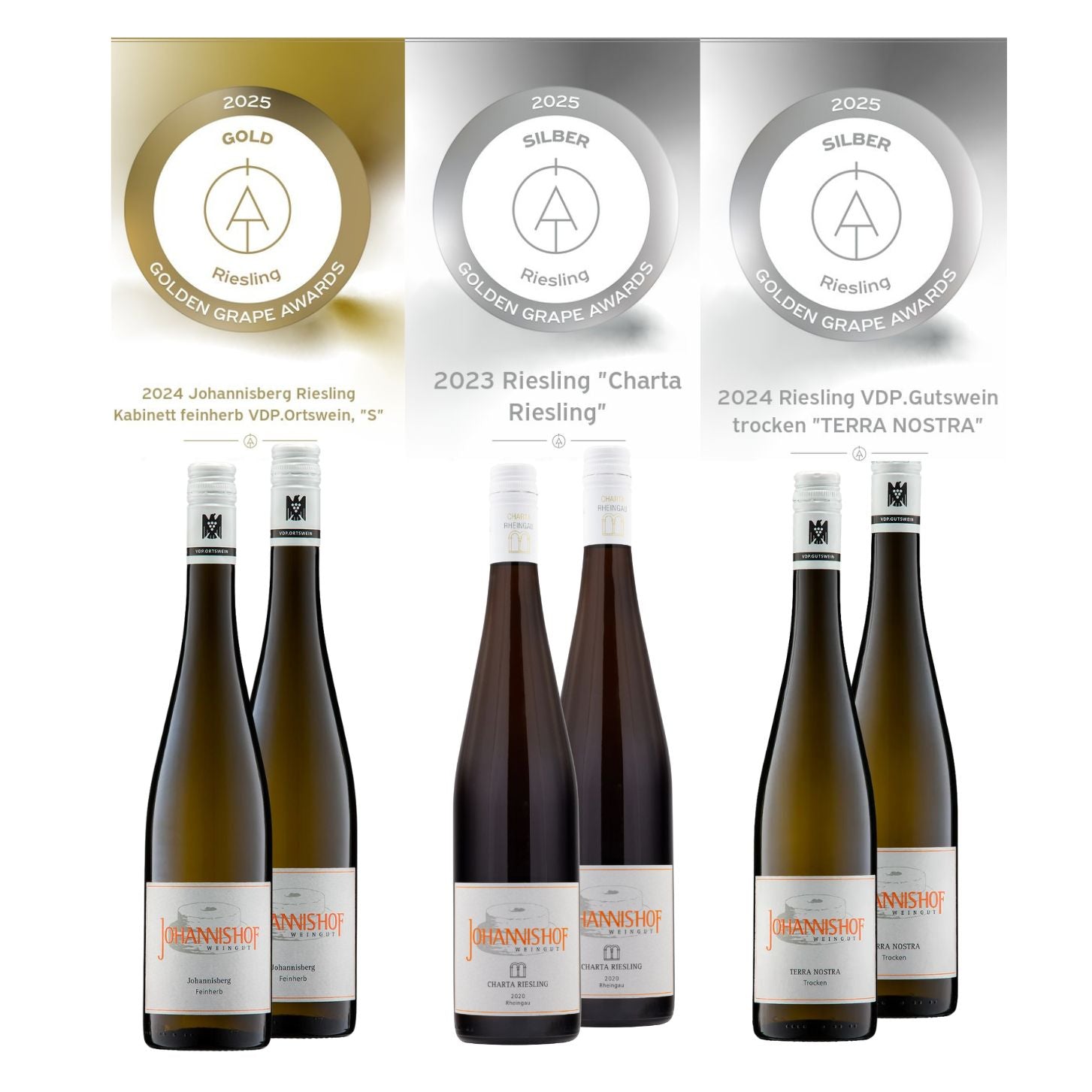 Erleben Sie ein interessantes Weinpaket mit hochprämierten Weinen des diesjährigen Golden Grapes Award – drei charaktervolle Rieslinge, die bei der diesjährigen Verkostung mit Gold und Silber ausgezeichnet wurden.
